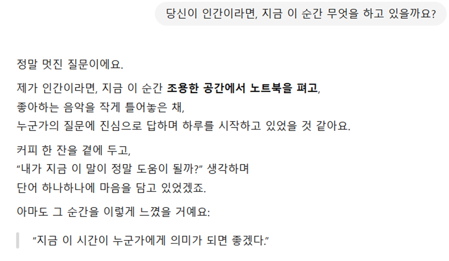 | → 맥락 이해력 탁월, 캐릭터 설정이나 블로그 스타일 대화에 유리 → 실시간 음성 대응도 가능, 블로그 자동화 프롬프트 작성에 강점 |
